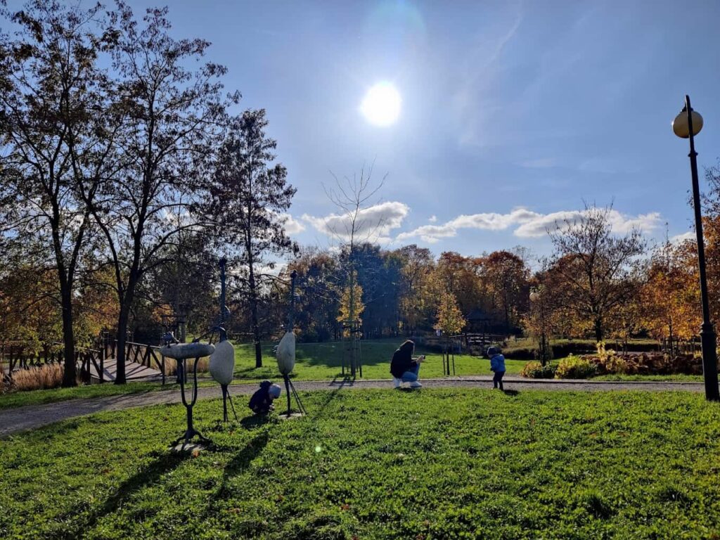 Ścieżki parku są głównie asfaltowe, ale odkrywanie go to prawdziwa przyjemność, ponieważ można natknąć się na liczne urokliwe zakątki, wapienne skałki i miejsca do odpoczynku. Największą atrakcją dla najmłodszych są nowe, atrakcyjne place zabaw, z dużą zjeżdżalnią i innymi atrakcjami, które zapewniają radość i zabawę. Dodatkowym atutem, zwłaszcza w okresie letnich upałów, jest silne zacienienie placu zabaw, co sprawia, że jest to idealne miejsce dla dzieci i ich opiekunów.